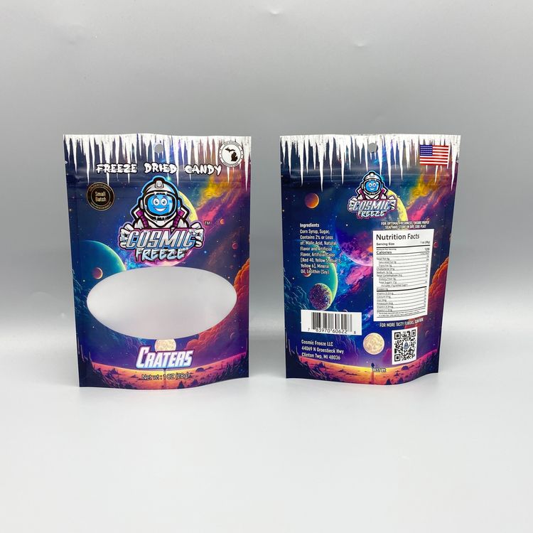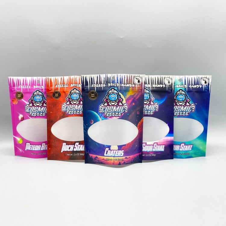 產(chǎn)品名稱:凍干糖果+鐳射膜+自立袋+開窗
