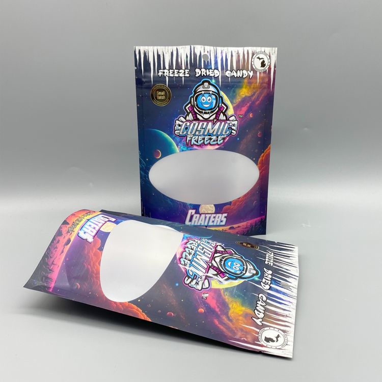 凍干糖果袋采用了時(shí)尚的鐳射膜材質(zhì),結(jié)合自立袋設(shè)計(jì)及獨(dú)特的開窗特性,為現(xiàn)代消費(fèi)者提供了一種既實(shí)用又具吸引力的包裝方案。
